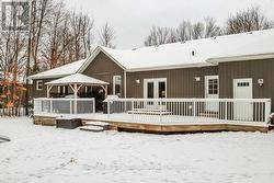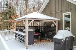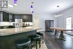 Welcome to this beautiful custom-built bungalow nestled in the sought-after community of Warminster, set on a 1.15-acre treed lot offering privacy, elegance, and resort-style living. This impressive 5 bedroom, 4 bathroom home showcases over $250,000 in upgrades and a thoughtful open-concept design featuring 9-foot ceilings and an abundance of natural light throughout. The entertainment-sized kitchen is a chef's dream with granite countertops, travertine tile, breakfast bar, and stainless steel appliances including a gas range, beverage refrigerator, and dishwasher. The inviting Primary Suite offers a luxurious ensuite and tranquil views, while the main floor laundry and 2-piece powder room add convenience and functionality. Hardwood floors flow seamlessly through the main living areas, enhancing the home's warmth and character. The finished lower level is designed for entertainment and relaxation, featuring two large bedrooms, a spa-inspired bathroom with walk-in shower, a home theatre, video gaming area, and a spacious family room with custom bar area - perfect for hosting friends and family. Step outside to your private oasis: a large entertainment-sized deck overlooks the landscaped yard and a stunning 16' x 32' heated inground pool (2023), creating the ultimate backyard retreat. The attached double tandem oversized garage provides ample space for vehicles, tools, and toys. This beautiful home is also wired for generator power for added security during power outages. Ideally located near parks, soccer fields, baseball diamonds, pickleball courts, and the new Xposed Ball Hockey League Courts, this home offers the perfect balance of luxury, recreation, and community living. Experience the best of country charm and modern sophistication in this exceptional Warminster bungalow - a true entertainer's dream! UPGRADES: Waterproofing of complete basement (2023), Washer & Dryer (2024), Humidifier (2023), Buried electric fence for pets, all deck boards (2024) (id:27)