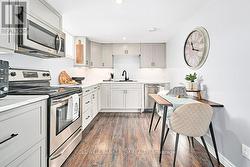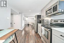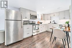 Charming 3-Bedroom Brick Bungalow with In-Law Suite. This beautifully updated brick bungalow showcases modern renovations and quality finishes throughout, including a new roof completed in 2024. The spacious main level offers a bright, open-concept living and dining area, a functional galley kitchen, a full bath, and three well-appointed bedrooms. The upstairs bathroom has been recently renovated. The fully finished lower level features large windows, an open-concept layout, and a complete in-law suite with a full kitchen equipped with stainless steel appliances, a generous living area with fireplace, and a bedroom with a pocket door and walk-in closet. Each unit enjoys a separate side entrance, with shared laundry located in a common basement area. Outside, enjoy a spacious, private, fully fenced backyard. The front bay window on the main level overlooks an open field and Lake Vista Park. Seller Does Not Warrant Retrofit Status of the basement. (id:27)