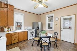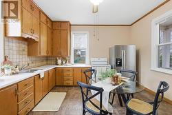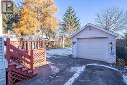 Discover The Potential In This Charming Home, Perfectly Situated On An Oversized 206 Ft Deep Lot In A Convenient Central Location! The Main Floor Welcomes You With Hardwood Flooring, A Bright & Airy Living Room, A Main Bathroom, And Two Bedrooms Featuring Impressive 9-Foot Ceilings. At The Back Of The Home, The Large Eat-In Kitchen Offers Ample Cabinetry, Tile Flooring, 9-Foot Ceilings, And Direct Access To A Breezeway That Leads To The Deck And Expansive Backyard, Ideal For Everyday Living And Entertaining. Upstairs, You'll Find Two Additional Light Filled Bedrooms With Updated Vinyl Flooring Throughout. This Level Was Refreshed In 2024 With New Vinyl Flooring And Refinished Walls And Ceilings, Adding A Clean, Modern Touch. The Full Height, Unfinished Basement Provides Excellent Storage Space. Outside, The Backyard Includes A Detached Garage With Electricity, A Storage Shed, Mature Trees And Plenty Of Room To Enjoy. A Charming Front Porch Completes The Home, Perfect For Sipping Your Morning Coffee. Located Close To Grocery Stores, Shopping, Schools, Transit, And The 401, This Home Offers Both Convenience And Opportunity. Don't Miss Your Chance To Make This Home Your Own! EXTRAS: Upstairs Ceiling & Walls Refinished (2024), All Upstairs Flooring (2024). (id:27)