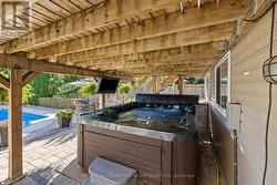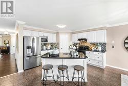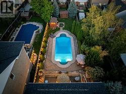 Welcome to 1586 Docking Court, a beautifully updated detached two-storey 4+1 bedroom 4 bath home on a quiet family-friendly court in north Oshawa. Ideally located near parks, schools, transit, and just minutes to the 407, Harmony Valley Park, and SmartCentres shopping, this property blends lifestyle and convenience. Sitting on a premium lot, the highlight is the luxurious inground pool with landscaped surroundings, accessible from the walkout basement or expansive upper deck-perfect for entertaining or family enjoyment. The main floor features bright, open-concept living and dining spaces with hardwood floors, a great room with gas fireplace and custom built-ins, and an eat-in kitchen with granite countertops, slate backsplash, stainless steel appliances, island, and walkout to the elevated deck with built-in BBQ gas hookup. Upstairs, find four spacious bedrooms with crown moulding, California shutters, and ample closets. The primary suite boasts a walk-in closet and spa-like ensuite with double vanity, soaker tub, and glass shower. The third and fourth bedrooms share a Jack & Jill bath, while all bedrooms provide generous space.The finished basement offers a large rec room and walkout to the backyard oasis. The fully fenced yard includes two sheds, while the attached garage and driveway accommodate up to 6 vehicles. Key updates include roof (2023), furnace (2024), and A/C (2024), ensuring peace of mind. This polished, move-in ready home in prime north Oshawa is truly a must-see opportunity! (id:27)
