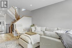 End-unit townhome set on an oversized pie-shaped lot in a quiet neighbourhood, backing onto public space with large parks & fantastic green space! Beautifully poised on a well-established street lined with mature trees, this well-maintained home exudes a welcoming and homey feel. Covered front porch and single attached garage with an expansive driveway. Sunken foyer with soaring ceilings sets an inviting tone and boasts practical built-in storage. Main living level opens into a bright, airy layout with generous room sizes, neutral grey tones, light hardwood-style laminate flooring & recessed lighting. Formal dining area anchors the front of the home, while the sun-filled living room at the rear features huge corner windows overlooking the backyard. Renovated kitchen seamlessly connects both spaces and showcases glossy white flat-panel cabinetry extended to the ceiling, striking black hardware, gleaming granite countertops, peninsula island with overhang seating, stainless steel gas range and direct access to the walkout deck - ideal for BBQing! Spacious primary suite with double-door entry, laminate flooring, walk-in closet & ensuite bathroom. Two additional bedrooms share use of the second full bathroom. Fully finished basement expands the living space further with a cozy gas fireplace, large window bringing in natural light & ample storage options -perfect for a family room, home office or hobby space. Fully fenced backyard is impressively sized and enhanced by a storage shed, large stone patio just off the deck, and lovely mature tree in the corner that adds both shade & privacy. Located in the heart of Old Barrhaven, surrounded by excellent schools, recreation centres & parks just steps away. Endless options for shopping, dining & everyday necessities. Close proximity to Highway 416 and well-connected transit. Big-ticket updates include AC, Furnace, Hot water tank - all replaced in 2020, plus Kitchen Reno - 2021, Dryer - 2025. (id:7525)