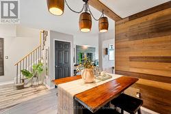 Ideally situated on a quiet crescent in the heart of Fallingbrook, steps from Cardinal Farm, Barnabe, and Ravine Parks. This unit boasts added/upgraded features, including inside access to the garage, an extended recreation room, an additional games room, a casement opening between the kitchen and living room, which lends a more open-concept feel, and a fully fenced yard with a hot tub and gazebo. The Main level features a bright kitchen with a patio door to the backyard, beautiful live-edge open upper shelving, a cozy dining room, and a free-flowing living room boasting a large picture window, spacious foyer area, and a convenient powder room. The fabulous extended lower-level recreation room takes advantage of the open stairs, with its large floor-to-ceiling window bringing in added natural light, and is highlighted by a wood-burning fireplace and an additional bar/games room. The second level is home to the spacious primary bedroom, featuring a wood-plank feature wall, a walk-in closet with sliding barn-style doors and an ensuite bath, two additional bedrooms, and a main bath with an added closet for extra storage. Funace, AC, windows approx. 10-12 years. Superb location close to public transportation, recreation facilities, scenic walking & bike paths, schools, shopping, restaurants, and all other amenities. Easy highway access. 24 hr irr. on offers. (id:7525)