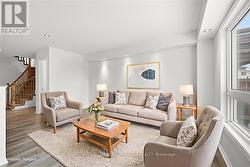This bright and spacious end-unit townhome offers an excellent, family-friendly floor plan in a desirable location; welcome to 2015 Breezewood Street. Step into the generous foyer, where you'll immediately appreciate the open-concept main floor living area. The living and dining rooms are ideal for entertaining, featuring newer flooring and large windows that flood the space with natural light. The kitchen is both functional and inviting, showcasing solid wood cabinetry, ample counter space, and crisp white appliances. A pleasing powder room and convenient inside access to the single-car garage complete this level. The second floor first opens to a versatile bonus family room, expansive in size and anchored by a cozy gas fireplace and a large window overlooking the quiet street. The primary bedroom offers exceptional space to accommodate any bedroom set and features a walk-in closet along with a four-piece ensuite complete with a relaxing soaker tub. Two additional bedrooms are generous in size with ample closet space. A neutral full bathroom and convenient second-floor laundry complete this level. The fully finished lower level adds valuable living space with a large recreation room, perfect for family movie nights or watching the big game, while still offering plenty of storage in the unfinished area. Step outside through the patio door off the kitchen to the sunny West-facing backyard, highlighted by a large deck ideal for outdoor dining and entertaining during the warmer months. Ideally located close to excellent schools, beautiful parks, transit, and major grocery stores, this home also offers the convenience of amenities within walking distance - an outstanding opportunity in a fantastic community. Some photos virtually staged. (id:27)