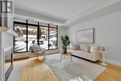 Fabulous 2-bedroom condominium located within "The Lanesborough" - a prestigious Domicile-built residence located steps to Parliament Hill, the Rideau Centre, ByWard Market and the Rideau Canal, with an incredible selection of vibrant restaurants and trendy cafés right outside your door! This beautifully designed unit offers 1,090 sq ft of well-planned living space with soaring 10 ft ceilings and a spacious, open-concept layout. A true standout feature is the exceptional ~36' x 19' private patio - a rare offering perfect for entertaining or relaxing in the city! The stylish kitchen is equipped with stainless steel appliances, granite countertops, a centre island with breakfast bar, and a storage pantry. The open living and dining room features a cozy gas fireplace, custom built-in shelving and a wall of windows that flood the space with natural light. The primary bedroom boasts a generous walk-in closet with custom organizers, while the spacious second bedroom is ideal as a guest room or home office. A beautifully appointed 3-piece main bathroom features a granite vanity and glass shower. Additional highlights include in-suite laundry, underground parking and a storage locker. A rare opportunity that perfectly blends style, outdoor space, walkability and an exceptional urban lifestyle! 24 hour irrevocable. (id:27)