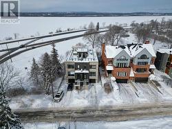 Luxurious 3-Storey Residence Backing onto NCC Parkland w Panoramic Ottawa River & Gatineau Hills Views Built in 2023 and set in a quiet, tucked-away downtown location, this exceptional 3+1 bedroom residence backs directly onto NCC parkland and offers breathtaking year-round views of the Ottawa River and Gatineau Hills. Featuring striking architecture and curated designer finishes, this home delivers a rare blend of privacy, elegance, and an unparalleled riverside lifestyle. The open-concept main level is designed for both grand entertaining and refined everyday living. A spacious living room is anchored by a stunning three-sided gas fireplace, flowing seamlessly into an expansive dining area ideal for hosting large gatherings. The chef's kitchen is a true showpiece, showcasing a dramatic 5' x 8' quartz island, top-of-the-line cabinetry blending sleek modern finishes w textured wood accents, and exquisite appliances perfect for gourmet creations. A stylish powder room with floating vanity & designer wave-pattern accent tile completes the level. Step outside to the spacious terrace off the kitchen, ideal for al fresco dining with tranquil river views. The second level features a serene primary suite with captivating vistas of the Gatineau Hills. The spa-inspired ensuite offers a double glass steam shower, freestanding soaker tub, double vanity, imported porcelain tile finishes. Two additional generous bedrooms share a beautifully appointed guest bath. A thoughtfully designed laundry room includes full-size appliances, folding counter, and hanging rod. Steps lead up to the spectacular rooftop terrace with sitting area, six-person hot tub, and aluminum and glass railings creating a private elevated retreat. The walk-out lower level offers an additional bedroom, full bath, & spacious media room with terrace doors to the patio and fenced rear garden with private gate to parkland. Garage includes workshop space and secure storage. Simply unbeatable. (id:27)