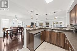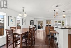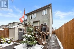 Sophisticated and sun-filled 3-bedroom, 4-bathroom end unit townhome ideally positioned on a premium corner lot in sought-after Riverside South. The largest of the Claridge models, it offers approximately 2,270 sq. ft. of thoughtfully designed living space that blends elegance with everyday functionality. A newly paved driveway (2024) and interlock walkway create a refined first impression, providing parking for up to four vehicles. Inside, the main level showcases hardwood and tile flooring and a bright, open-concept kitchen and under-cabinet lighting, stainless steel appliances, and a walk-in pantry (2017). Elegant lighting highlights the dining area, while a raised gas fireplace anchors the inviting living room-perfect for relaxing evenings at home. Main level also includes 4 ceiling speakers. Upstairs features soft broadloom, a convenient laundry room, and three generous bedrooms. The primary suite offers a walk-in closet and a luxurious ensuite with upgraded tile and fixtures. Secondary bedrooms share a tastefully updated, main bath designed with modern materials and thoughtful detail. The fully finished lower level adds exceptional living space with a large recreation room, full 3-piece bath (2021), and ample storage. It's wired for ceiling surround sound speakers and includes electric baseboard heaters, ideal for a media room, gym, or guest retreat. Notable updates: John Wood Proline 60-gal hot water tank (2024, owned), Goodman furnace (2017), rear deck (2018, fully permitted), natural gas BBQ line (2019), fencing (2020 & 2023), upgraded toilets (2018), patio stone walkway (2019), and gutter drainage to dry wells (2019). An impeccably maintained, move-in-ready home just minutes from Claudette Cain Park and the future Riverside South LRT Station-a perfect blend of comfort, quality, and location. (id:27)