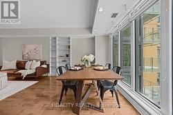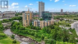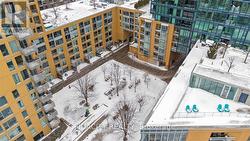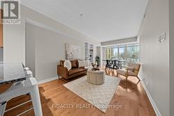 Live immersed in nature without compromising downtown convenience in this one-of-a-kind one-bedroom plus den residence at LeBreton Flats, complete with underground parking. Located in an elegant LEED-certified building, this approximately 700+ sq ft suite offers a rare sense of space and tranquility.Upon entering, you are greeted with stunning views. The unit is quietly positioned overlooking the building's landscaped garden courtyard, sheltered from street noise and framed by floor-to-ceiling windows with views of mature trees the Bronson escarpment and beyond. Elegant hardwood flooring flows throughout the open-concept living areas, while the thoughtful layout delivers both comfort and functionality.The kitchen is fitted with granite countertops, ample counter and cabinet space, a breakfast bar, an oversized pantry, and a cleverly concealed storage nook hidden behind a swinging bookcase. The primary bedroom offers more beautiful views, complemented by a separate, spacious den and stacked laundry. A private covered balcony provides the ideal setting to enjoy morning coffee surrounded by greenery.Residents enjoy an impressive collection of amenities, including a rooftop terrace with panoramic views of the Ottawa River, Parliament, and War Museum, a fully equipped gym, sauna, party room, bike storage, and pet-friendly policies. The unit includes 1 underground parking spot and a storage locker, with the building's electrical infrastructure in place for a future EV charger if desired. Ideally located just minutes from Pimisi LRT Station with easy cross-city access, and close to Bayview Station, this spot is within walking distance of downtown offices and shops, Little Italy, Chinatown, river pathways, kayaking and cycling routes, Bluesfest grounds, and the future Adisoke Central Library. The future Ottawa Senators arena is also nearby, further enhancing the long-term appeal of this exceptional neighbourhood.( Heat & Water included in condo fees.) (id:27)