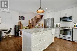 Welcome to 551 Kilspindie Ridge, a stylish open concept executive townhome in "The Orchard "of Stonebridge, by Uniform, perfect for today's busy lifestyle. Step inside to a spacious front entry with a convenient 2-piece powder room. The open concept main floor features rich hardwood flooring throughout and is designed for both everyday living and entertaining. The kitchen offers granite countertops, stainless steel appliances, a natural gas stove, microwave hood fan, and a breakfast bar ideal for casual meals. The inviting living room is filled with natural light from large windows and anchored by a cozy gas fireplace. The dining area includes patio doors leading to a fully fenced backyard and showcases a beautiful custom wall treatment that adds a designer touch. Upstairs, the large primary bedroom is a true retreat with a custom wall treatment, walk-in closet, and a 4-piece ensuite. Two additional well-sized bedrooms, a full family bath, and second-floor laundry complete this level. No more hauling laundry up and down stairs! The fully finished lower level extends your living space with a comfortable family room, another custom wall treatment, a 3-piece bath, and a utility room with plenty of storage. Ideally located withing walking distance from the prestigious Stonebrige Golf Course and Country Club, close to schools, parks, recreation centers, shopping, restaurants, and some fantastic local coffee shops. A wonderful place to call home in a sought after Stonebridge community. All offers to include Schedule B. (id:27)