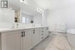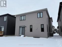 This exceptional 4-bedroom home showcases modern luxury and timeless finishing choices in one of Ottawa's most desirable communities; Mahogany in Manotick. Step inside to discover an elegant layout highlighted by 9-foot ceilings, hardwood flooring, a bright entrance foyer, a main level den, and an open concept living/dining area with a sleek gas fireplace creating a warm and sophisticated atmosphere. The custom-designed kitchen is a chef's dream, featuring quartz countertops, soft-close cabinetry, and upgraded lighting that beautifully complements the space. A semi-circular oak staircase leads to the upper level, where you'll find a spacious primary retreat complete with a walk-in closet and a spa-inspired ensuite offering double sinks and a stand-alone soaker tub-perfect for relaxation, three additional bedrooms, a full bathroom and second floor laundry room complete the upper level. Set within the prestigious Mahogany community, this home offers the perfect blend of tranquility and convenience, moments from the Manotick Village core, parks, trails, and the Rideau River. (id:27)