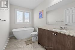 Welcome to this beautiful 4-bedroom, 3-bathroom detached home in the sought-after Connections in Kanata community. The main floor features an open-concept layout with 9 ft ceilings, a spacious living room with a large window and cozy fireplace, and a separate dining room. The upgraded kitchen offers a breakfast area, stainless steel appliances including a gas stove, a quartz island with an undermount sink, quartz countertops, a modern backsplash, and stylish cabinetry. Upgraded oak stairs lead you to the second floor, where you'll find a generous primary bedroom with a 4-piece ensuite, along with three additional bedrooms and a full common bathroom. This home includes over $50,000 in builder upgrades throughout. Additional features include a fully fenced yard, automatic garage door opener, eavestroughs, pot lights in the kitchen/living/dining rooms, video camera rough-in, and an electrical outlet in the garage for EV charging-plus much more. Enjoy peace of mind with five years of Tarion warranty remaining. *All dimensions are taken from builder's floorplan. Don't miss your chance to own this stunning home. (id:27)