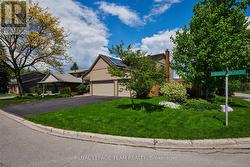Welcome to this meticulously maintained home, beautifully positioned on a corner lot on a quiet street in the sought-after community of Hunt Club Woods. Thoughtfully landscaped and equipped with an irrigation system, the outdoor spaces have been carefully cultivated over years of attention and heart, creating a peaceful and private setting. Inside, the main level offers hardwood flooring, a warm and inviting family room with a wood-burning fireplace insert, and a bright eat-in kitchen featuring Corian countertops and a bay window overlooking the garden. Practical touches include main-level laundry conveniently located off the side-door entrance, custom blinds on the main floor, and a wet bar in the family room. Four bedrooms are located on the second level, including the spacious primary retreat, which features a walk-in closet and a beautifully renovated 4-piece ensuite with heated flooring. An additional bedroom on the lower level provides flexible space for guests, a home office, or extended family. Extensive updates provide peace of mind, including a new pressure-treated pine fence, triple-glazed windows, exterior siding that was recently replaced with durable James Hardie Board siding, painted garage doors and stucco, and new gutters with covers, offering long-term, low-maintenance living. Ideally located minutes from Hunt Club Golf Course, steps to walking paths, close to parks, schools, shopping, dining, transit, and major commuting routes, this move-in-ready home combines comfort, quality, and an exceptional location. (id:27)