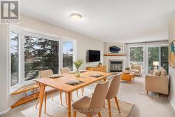 Well maintained, end-unit 2-bedroom, 2 bath upper terrace condo offering a bright interior in a peaceful, forest-backed setting of Convent Glen. The main level features an open-concept living/dining area with a cozy wood-burning fireplace and access to a private balcony with tranquil green-space views. A sun-filled eat-in kitchen and convenient powder room complete the main floor. Upstairs you'll find a sky light over the staircase & upper hallway, spacious primary bedroom with wall-to-wall closet space and its own private balcony, a bright second bedroom, full bathroom, and in-unit laundry/storage area. Newer carpets on the upper level, newer full sized washer/dryer and freshly painted throughout. Located steps from parks, playgrounds, transit, shops and the Ottawa River pathways, with easy access to Place d'Orléans, Petrie Island Beach and the LRT station. A perfect low-maintenance home in a highly desirable, nature-surrounded neighborhood. (id:27)