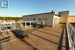 An impressive second-floor condominium in the centre of Owen Sound, this residence balances elegance with every day comfort. A private elevator opens directly into the unit, creating an immediate sense of privacy and presence. The open living, dining, and kitchen space features hardwood flooring, a calm, modern colour palette, crown moulding and crisp, white trim. The kitchen includes built-in appliances and granite countertops, while the living area is anchored by a gas fireplace with floor-to-ceiling built-ins and opens onto a spacious balcony overlooking the Sydenham River. The primary bedroom offers direct balcony access, a walk-in closet with custom organizer, and a private four-piece ensuite. Positioned at the other end of the unit, the second bedroom includes its own walk-in closet and convenient access to a full bath, ideal for guests or family. The main balcony runs the full width of the home, providing ample space for dining and relaxing while enjoying unobstructed river views. A second, more intimate balcony off the dining area adds another outdoor option. Building amenities include a kayak dock and storage, secure entry, and underground parking with a dedicated space equipped for EV charging, along with a large storage locker. Set within a sought-after building, this location supports a walkable lifestyle just steps to the theatre, library, and downtown shops and restaurants. A refined riverfront home in an urban setting. (id:27)