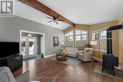 Welcome to this charming 2-bedroom, 2-bathroom home nestled on a quiet crescent in the heart of Pembroke-just minutes from the hospital, shopping, and schools. Thoughtfully designed for comfort and convenience, this inviting property blends cozy character with modern touches throughout. Step inside from the lovely covered front porch to discover a spacious layout with an abundance of natural light. The large eat-in kitchen offers plenty of room for family dining or entertaining, with easy flow into the warm and inviting back living room. Boasting a cathedral ceiling, beautiful gas fireplace, and generous windows, this space is perfect for relaxing or hosting guests year-round. A practical entryway at the rear provides added convenience and storage. Continuing on the main level, you'll find two comfortable bedrooms and a full bathroom. The primary bedroom includes a double closet, offering ample space for wardrobe organization. Downstairs, the unfinished lower level presents great potential-with a rec room, storage areas, a possible third bedroom, laundry area, and a handy 2-piece bathroom already in place. Outside, enjoy peaceful mornings or evening chats on the charming covered porch, surrounded by a well-kept yard in a quiet, family-friendly neighbourhood. This home is ideal for first-time buyers, downsizers, or anyone seeking an affordable and welcoming space close to amenities. Move in and make it your own while adding your personal touches over time! 24 Hour Irrevocable on all offers. (id:27)