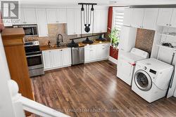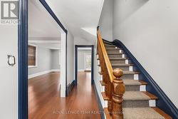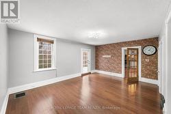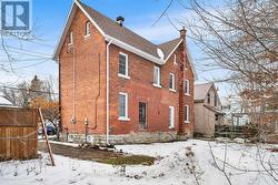 Beautiful, well-maintained century home on a quiet, central Pembroke street. All brick with classic character, this home offers 4 bedrooms and 1 bathroom and R2 zoning. With its generous square footage, two separate entrances, and two staircases, the layout could accommodate a duplex conversion. Enjoy privacy with no rear neighbors, a generous fenced yard, and a stunning view backing onto a River. Inside, the home features high ceilings, generously sized rooms, and plenty of large windows that create a bright, airy atmosphere throughout. The open main-floor kitchen showcases a unique backsplash. The convenience of main-floor laundry adds to the home's functional layout. Well kept and clean, it is move-in ready and has been pre-inspected for peace of mind. Located within walking distance to Bishop Smith Catholic High School and close to parks, shopping, and everyday amenities, this home blends heritage charm with modern convenience in a central location. Listing Realtor is spouse of POA. Some photos virtually staged. Furnace. A/C and roof all completed since 2020. (id:27)