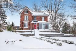 Perched on a hilltop in the heart of Penetanguishene, 26 Robert Street East is an exquisitely restored Edwardian century home offering timeless elegance, modern comfort, and exceptional privacy. Set on an impressive 118 ft x 224 ft lot, this rare property blends historic charm with thoughtful, high-quality updates.Inside, the home showcases over a century of craftsmanship with soaring ceilings, reclaimed hardwood floors, and exposed brick accents throughout. The updated kitchen features dramatic ceiling height, a walkout to a sun-filled deck, and seamless access to a walk-in pantry and laundry room-designed for both refined living and effortless entertaining. A formal dining room with a decorative fireplace and large windows creates an inviting atmosphere, while the cozy family room opens to a bright sunroom with elevated views across town. The upper level offers three generously sized bedrooms and two beautifully updated 3-piece bathrooms. A finished attic provides over 700 sq ft of flexible living space, ideal for a home office, studio, or private retreat. Outdoors, the expansive grounds offer room to garden, entertain, or simply unwind, complemented by two detached garages perfect for storage, workshop space, or creative pursuits. Distinctive restoration details, including a custom fence crafted from the home's original storm windows, reflect the care and vision behind every element. Significant updates include a new roof, all new windows, and fully modernized electrical and plumbing systems, ensuring modern peace of mind within a historic setting. Located just minutes from Georgian Bay, waterfront parks, trails, and downtown Penetanguishene, this exceptional residence offers a rare opportunity to own a beautifully restored piece of Ontario's architectural heritage. (id:27)