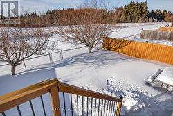 A place to hang your heart. This spacious family home is located in one of Peterborough's most desirable west-end neighbourhoods. Step through the front door into a stunning two-storey foyer highlighted by a circular staircase leading to the upper level. The thoughtfully designed floor plan easily accommodates a growing family and includes a main-floor office-ideal for working from home. The formal dining room is well suited for hosting gatherings and special occasions, while the separate living room offers a comfortable space to relax. The kitchen features a generous breakfast area with a walk-out to the deck, overlooking a fully fenced yard that backs onto greenspace. The upper level offers five bedrooms and two bathrooms, including a spacious primary suite complete with a four-piece ensuite and walk-in closet. The lower level is partially finished and currently set up as a gym, with additional space proving potential for customization. Conveniently located close to shopping, friendly neighbours, and easy access to Highway 115 for commuters. A must-see home to truly appreciate all it has to offer. (id:27)