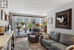 A perfect two bedroom, two bath, level entry ground floor condominium in "The Maples", offering truly carefree living. This home is in tip top condition, newer flooring, in-suite laundry, some updates in the baths, and newer fridge and stove. Bright living and dining areas with 2 sets of patio doors opening to a private patio, gardens and a wooded area with the babbling waters of Bears Creek. Convenient underground parking, meeting/party room, library, gym, storage, ample visitor parking and plenty of outdoor areas to enjoy. A lovely place to call home. (id:27)