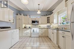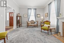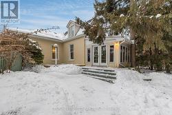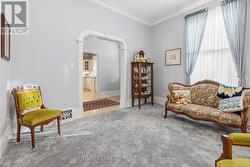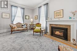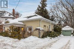 Step into timeless charm in this beautifully maintained character home, ideally located within walking distance to local shops, cafes, and everyday amenities. Featuring soaring 10-foot ceilings and a thoughtful layout. Recent improvements include a roof and eavestroughs updated just two years ago and newer windows that fill the home with natural light. The main floor is designed for easy, one-level living, offering spacious kitchen, living, and dining areas, perfect for everyday life and entertaining alike. Cozy up by the gas fireplace in the inviting living room, or unwind in the sun-filled rear addition overlooking the private, fully fenced, landscaped backyard with deck. The home offers two bedrooms, 1.5 bathrooms, and the convenience of main-floor laundry. Upstairs, you'll find a versatile den with views of the backyard, previously used as a guest bedroom, ideal for visitors, a home office, or extra living space. Outside, enjoy the detached garage, ample parking, and a peaceful backyard retreat. This is a rare opportunity to own a character-filled home that delivers charm, walkable convenience, flexible living space, and timeless appeal. (id:27)