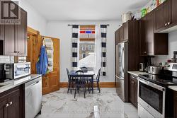 Where heritage meets modern style, this family home has been lovingly owned by three generations of the same family. The property features three bedrooms, a Newer Updated 4-piece bathroom, and a 2-piece bathroom, as well as a beautifully renovated kitchen by Buchanan kitchens, showcasing exquisite porcelain tiles. The restored wood trim and stunning stained glass windows contribute to the home's unique charm. There are French pocket doors All Glass 100 years old, in wall of the living room. A modern 4-piece bathroom on the main floor, featuring laundry facilities, and three spacious bedrooms on the second floor, accompanied by a 2-piece bathroom, this property offers the perfect blend of style and functionality. Its proximity to PRHC, Jackson's Park, and downtown's excellent dining options makes it an attractive option for first-time buyers and investors, particularly given its potential for rental income from Trent University students. (id:27)
