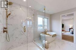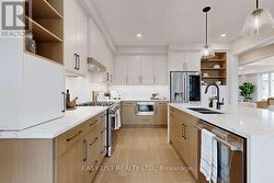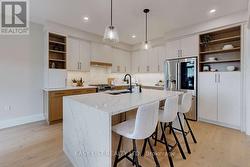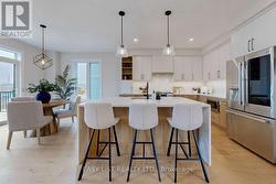 For more info on this property, please click the Brochure button. Stunning brand new fully upgraded model home. Offering 2,960 sq ft of finished living space plus a custom finished basement, this exceptional home showcases high end craftsmanship throughout. The striking stone and brick exterior is complemented by a stone driveway and natural stone walkway with planter boxes leading to an oversized covered front porch. The landscaped backyard features a large wood and metal rear deck with steps to a private yard, along with a two car garage. Inside, the home offers four spacious bedrooms and three and a half bathrooms, plus an additional bedroom or office and full bathroom in the bright finished basement. Thoughtful architectural details include nine foot main floor ceilings, taller basement ceilings, vaulted ceilings in three second floor bedrooms, a coffered ceiling in the living and dining room, a waffle ceiling in the great room and decorative wainscoting on the stairway wall. Premium finishes continue with upgraded hardwood flooring and tile throughout including the finished basement, as well as a gas fireplace in the great room. The primary suite features two large walk in closets and a luxurious five piece spa ensuite with a double sink vanity, freestanding tub, and glass enclosed tiled shower. All bathrooms include quartz counter tops with upgraded undermount sinks. The gourmet kitchen is designed for both style and function, featuring quartz countertops, a large island with extended breakfast bar, pantry, designer backsplash, upgraded cabinetry and undermount sink. Included with the home are stainless steel kitchen appliances, a washer and dryer in the main floor laundry, central air conditioning, and many additional upgrades throughout. This truly one of a kind custom home must be seen to be appreciated. (id:27)