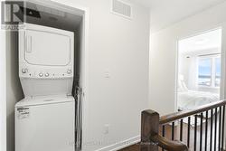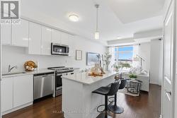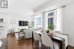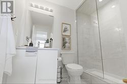 Welcome To This Stunning Home Featuring Modern Upgrades Throughout, Located In The Heart Of Pickering! Step Inside To A Welcoming Entry Level Featuring A Convenient Closet And Direct Access To The Garage. Upstairs, The Bright And Spacious Open-Concept Living Area Impresses With 9-Foot Ceilings, Hardwood Flooring, And An Updated Powder Room. The Modern Kitchen Boasts Stainless Steel Appliances, Quartz Countertops, And A Centre Island With Seating, Seamlessly Flowing Into The Living And Dining Areas. Large Windows Flood The Space With Natural Light And Lead To Your Private Balcony, Perfect For Morning Coffee Or Entertaining Guests. The Upper Level Offers Hardwood Flooring Throughout, Convenient Stackable Laundry, A Stylish Main Bathroom And Two Great Sized Bedrooms, Including A Serene Primary Retreat With 9.5-Foot Ceiling, Large Window, Walk-In Closet, And A Sleek 3-Piece Ensuite With A Walk-In Glass Shower! Outside, Enjoy A Nearby Park And Every Amenity You Could Dream Of Just Steps Away. This Move-In-Ready Home Offers The Perfect Blend Of Comfort, Style, And Convenience, Simply Unpack And Start Enjoying Everything It Has To Offer! Home Was Built In 2021. All Kitchen Appliances (2021), Clothes Washer & Dryer (2021), Powder Room (2025). Monthly Maintenance Fees Include Exterior Window Cleaning, Visitor Parking, Community Space Use & Maintenance (Park) & Garbage Collection. (id:27)