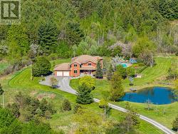 Welcome to a home that nurtures both comfort and connection. Set on 15 acres of peaceful countryside in rural Pickering, this custom-built 4-bedroom home offers nearly 6,000 sq ft of thoughtfully designed living space - a place to grow, gather, and enjoy life's quiet moments while staying close to every convenience. Step inside to a beautifully laid-out main floor where every detail feels intentional. The dining area features hardwood floors and a picture-perfect view of the surrounding landscape. At the heart of the home, the kitchen offers built-in double ovens, a gas cooktop on the centre island. Overlooking the sunken living room, a wood-burning fireplace creates a warm and welcoming space to unwind while admiring the natural scenery beyond. A private office with built-in shelving and hardwood floors provides a comfortable work-from-home retreat. Upstairs, the primary suite is a true haven with a walk-in closet, soaker tub, separate shower, and a walkout to a private balcony overlooking the fully stocked trout pond - the perfect spot for a peaceful morning coffee. Three additional bedrooms offer ample space for family, guests, or flexible living. The full walk-out basement expands your lifestyle with a large recreation area, a sound-proof media room, a convenient kitchenette, and access to a bright glass-enclosed sunroom - ideal for year-round enjoyment or stargazing in comfort. A new high-efficiency heat pump ensures comfort through every season. Outdoors, the setting is equally remarkable. Enjoy an in-ground pool, Arctic Spa hot tub, an electronic gate and outdoor lighting, apple trees, and endless space to explore. All new high-end energy star windows in custom colour and stained fibreglass entry door system. Garden doors and retractable mirage screens. Peaceful and private, yet just seven minutes to the 407 - this property offers the perfect balance of country living and modern convenience. This isn't just a home - it's a lifestyle meant to be lived. (id:27)