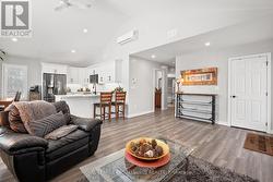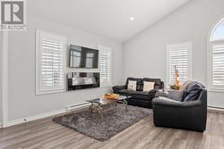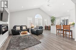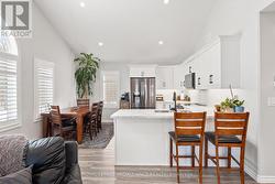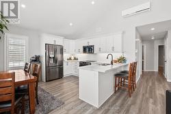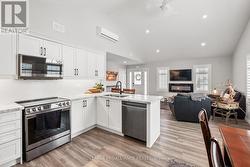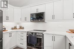 Set apart by its end-unit position, added privacy, and green space views, Unit 102 at 300 Croft Street offers a thoughtful take on modern, low-maintenance living. This one-level condo townhouse features upgraded LG black stainless steel appliances, a bright open-concept layout, and a connection to the outdoors that's rarely found in condo living. Paired with a walkable neighbourhood and included exterior maintenance, it's easy to see why this location works so well for so many stages of life. Newly built in 2023, the home offers effortless living across one level with 2 bedrooms plus a flexible laundry and den space, and 1.5 bathrooms. Stylish finishes include vinyl plank flooring, sleek quartz countertops in both the kitchen and bathrooms, upgraded under-mount kitchen lighting, California shutters, and an extended kitchen countertop for added seating. The open-concept layout is enhanced by 9-foot ceilings, vaulted ceilings in the kitchen and living room, and a large window with a view that's not to be missed. An oversized laundry room adds valuable flexibility, housing an all-in-one wash and dry centre while also serving as a den, utility, or storage space. The owned, on-demand tankless water heater offers added peace of mind, while all-inclusive services such as garbage collection, snow removal, grass cutting, and garden maintenance keep day-to-day living simple. The parking space is conveniently located directly in front of the unit's door. Backing onto the Trinity College green space rather than neighbouring units, this end-unit condo is surrounded by mature trees and lush greenery. With easy access to the 401 and nearby amenities, this home delivers comfort, convenience, and a strong sense of community **Note: BBQs are allowed** (id:7525)