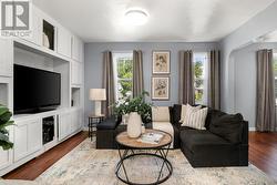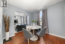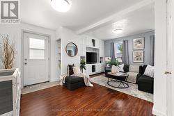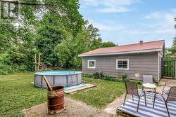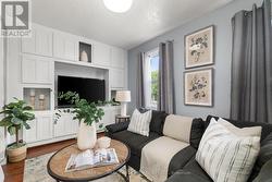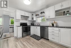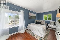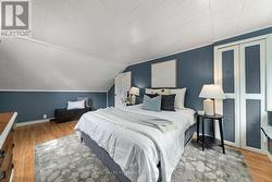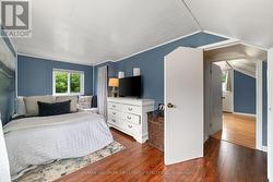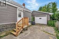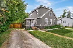 Charming, updated 2-bedroom, 2-storey home on a generous sized lot with easy access to Hwy 401 & all amenities! Featuring new siding, updated windows, freshly painted and modern flooring throughout, this home blends comfort with convenience. Step into a bright mudroom with main-floor laundry, leading into a spacious kitchen with full appliance package. Separate dining room/living room featuring handy built in shelving for your TV, books and cherished family photos. Finishing off the main level is a modern 4-piece main bath. Second level offers primary bedroom with walkout to a private balcony perfect for morning coffee and a generous sized secondary bedroom. The unfinished basement provides ample storage space. Outside boasts 2 driveways with ample parking, oversized detached garage and metal roof, and a great yard ready for your personal touch. A perfect mix of charm & space! (id:27)