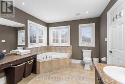 Queensgate luxury home in the heart of Fontainbleu, linked only by the double car garage. This premium end unit offers 2457 sq ft of elegant living space (above grade) and is ideally located adjacent to a parkette for added privacy. Bright and spacious open-concept layout with 9-foot smooth ceilings, hardwood floors and pot lights on the main floor. Gourmet kitchen features granite countertops, breakfast bar, stainless steel appliances and a tiled backsplash. Enjoy a cozy 3-sided gas fireplace, perfect for both living and dining areas. The large primary bedroom boasts a 5-piece ensuite and 2 oversized walk-in closet with built-in organizers by California Closets. Convienent second floor laundry. Professional landscaped with high-end TREX deck and fully fenced. Located in a family-friendly neighbourhood near top-rated schools including Lake Wilcox PS, Windham Ridge PS, Richmond Green SS. Close to parks, trails, shopping, Go transit and Highway 404. ** This is a linked property.** (id:27)