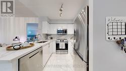 Bright and spacious hidden gem in the heart of Richmond Hill! Beautifully renovated 2-bedroom, 2-bath unit offers thoughtfully designed living space with a functional split-bedroom layout and a generously sized open-concept living & dining area. The property features a modern kitchen with plenty of storage, quartz counter & backsplash, high-end stainless-steel appliances, and a convenient breakfast bar. Stylish bathrooms, new flooring throughout, upgraded light fixtures, newer front-load washer/dryer. Elegant primary bedroom offers a serene escape, featuring a walk-in closet and a spa-inspired ensuite bathroom. Enjoy sunrise mornings and alfresco dining on a cozy balcony with a lush garden view. The unit comes with parking and a locker. Condo fee covers heat & water. Great location: walking distance to GO station, Viva, Parks, Schools, Restaurants, Medical, Banks, Hillcrest Mall, minutes to major highways 7, 404 & 407. Planned Subway Expansion. (id:27)