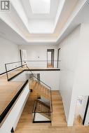 Welcome to a haven of custom-built luxury, ready to be experienced. *Located in the prestigious Mill Pond neighborhood, with only a 3 minutes' drive to Major Mackenzie Hospital.* This magnificent home boasts 5000+ sq ft of above-grade living space, 5+2 bedrooms, 2+1 car garage, high-end kitchen appliances, well-appointed layout, exceptional design, and elegant finishes throughout. Enter to find the stunning main foyer with a soaring 22' ceiling- leading to the main floor with beautiful open-concept living & dining rooms, fully-equipped chef's kitchen with a centre island & built-in appliances, a second/dirty kitchen with kitchen & dining room access, breakfast area, vast family room that walks out to the deck, private office, and functional mudroom with access from the garage. Upstairs, 5 large bedrooms each have their own ensuites; including the serene primary room, with built-in speakers, paneling, fireplace, sizeable walk-in closet, and dazzling 6-piece ensuite with heated floors. The finished basement boasts heated floors, with an enormous recreation room that walks up to the lush backyard, wet bar, built-in speakers, and two additional bedrooms with an ensuite. Find additional custom high-end features throughout: smart mirrors, trimless aluminum doors, aluminum glass doors on cabinets & closets, immaculate ultra-clear tempered glass, sintered stone counters (kitchen), lacquered kitchen cabinets, composite deck, LED pot lights, track lighting & cove lighting throughout, 30' high skylights (from main floor), 11'3" floors on main, 10' floors on second (12' in primary room). HIGHLY convenient location, with only minutes to Yonge St, peaceful parks and ravine, schools, hospital, shops, coffee, market, transit, and more. Discover what it means to truly live in both comfort, and high opulence. (id:27)