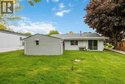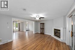 This beautiful bungalow features a bright, welcoming layout with two spacious bedrooms and two updated bathrooms, including a private ensuite. The home boasts a stunning white kitchen, a cozy gas fireplace, and a sunroom ideal for year-round relaxation. Fresh paint throughout gives the interior a crisp, modern feel. Step outside to a covered back porch overlooking tranquil green space, along with a large storage shed and a double driveway for added convenience. Ideally located close to coffee shops, restaurants, and everyday amenities. Monthly Maintenance fee is : $984 month. This includes: your land lease, monthly taxes , includes water & park maintenance (id:27)