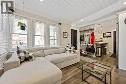 FULLY RENOVATED BUNGALOW ON A 172-FT DEEP LOT, JUST STEPS FROM A K–8 SCHOOL. UPDATED THROUGHOUT WITH VINYL PLANK FLOORING, MODERN TRIM AND DOORS, AND SHIPLAP CEILINGS WITH CROWN MOULDING. BRIGHT KITCHEN WITH BREAKFAST BAR AND ACCESS TO A COVERED SIDE PORCH. MAIN BATH FEATURES A SOAKER TUB WITH PORCELAIN TILE SURROUND, AND BOTH BEDROOMS INCLUDE CUSTOM CLOSET ORGANIZERS. NEW SUN DECK AND SLIDING DOOR OVERLOOK THE REFRESHED YARD WITH NEW FENCING, FRENCH DRAIN SYSTEM WITH SUMP PUMP, RE-GRADING AND NEW SOD, PLUS A/C RELOCATION. FINISHED LOWER LEVEL ADDS A THIRD BEDROOM, REC ROOM, OFFICE/PLAY AREA, AND UPDATED 3-PC BATH. DETACHED 12X20 GARAGE. MAJOR UPDATES INCLUDE FURNACE, A/C, SHINGLES, SIDING, EAVES, WINDOWS, INSULATION, PLUMBING, ENTRY DOORS, AND FULL ELECTRICAL REWIRE WITH NEW PANEL. HOT WATER TANK RENTAL. MOVE-IN READY WITH ALL THE BIG WORK DONE. (id:27)