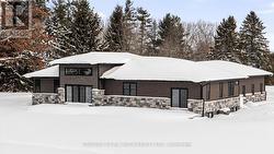 A Masterpiece of Modern Elegance in a Tranquil Country Setting. Prepare to be captivated by this custom-built bungalow a residence that redefines luxury living. Meticulously crafted with premium upgrades throughout, this home offers an exquisite blend of opulence, functionality, and serene countryside charm, all just minutes from Orillia. Step inside the expansive open concept main level, where natural light floods through oversized windows, illuminating every curated detail. The heart of the home an entertainers dream kitchen features: massive quartz-topped island, full wet bar, generous walk-in pantry and Custom cabinetry with designer lighting. Flowing seamlessly from the kitchen is the great room, a dramatic space boasting 14-ft beamed and shiplap ceilings, a striking fireplace, and custom LED ambient lighting. Step through oversized glass doors to a grand stone patio, ideal for alfresco dining and sophisticated outdoor entertaining. The primary suite is your personal sanctuary, complete with: spa inspired 5-piece ensuite featuring a freestanding soaker tub, luxurious walk-in shower, and dual vanities, fully outfitted walk-in closet with custom storage solutions. Two additional generously sized bedrooms share a designer 5-piece bath, while the main floor is completed by a stylish mudroom, laundry room, and wide plank engineered hardwood flooring throughout. Descend to the fully finished ICF basement, where possibilities abound. This level offers: An additional bedroom and full bathroom, A state of the art synthetic ice hockey rink (a truly rare and extraordinary feature in a private residence), Expansive space for a home theatre, gym, or recreation lounge. The oversized, heated 3-car garage is equally impressive, fully insulated with epoxy coated floors. Set on a peaceful lot backing onto open farmland, the property offers direct access to the OFSC snowmobile trail, and is ideally situated just a short drive to local beaches, shopping, dining, and more. (id:27)