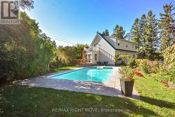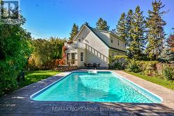 Welcome to your own private retreat where country living meets modern convenience. This beautifully maintained two-storey home is an entertainer's dream, featuring a backyard with a heated in-ground saltwater pool, a dedicated BBQ area for summer gatherings, and a cozy fire pit area ideal for relaxing evenings under the stars. Inside, enjoy over 2,000 square feet of bright, comfortable living space designed with family living in mind. The main floor features hardwood floors, a functional layout filled with natural light, and multiple spaces designed for everyday comfort, including a well-appointed eat-in kitchen, a formal dining room, a welcoming living room with a gas fireplace, a sunroom, a private office, and a convenient laundry room. Upstairs, you'll find three spacious bedrooms, including a lovely primary suite complete with a full ensuite bathroom and private balcony overlooking the property. The finished lower level has 9" ceilings and adds approximately 546 square feet of versatile space perfect for a home gym, playroom, office, or cozy movie-night retreat, complete with a gas fireplace. Additional highlights include a double garage with a separate hydro service, a durable metal roof, a pool house, a shed, a drilled well (2011), central air, and more. Perfectly situated just outside the city, this home offers country life with easy access to schools, shopping, and amenities. This home is surrounded by mature trees, vibrant gardens, and a picture-perfect pond, creating an inviting atmosphere from the moment you arrive. Discover the perfect blend of comfort, charm, and convenience where you'll instantly feel at home. (id:27)