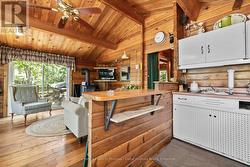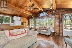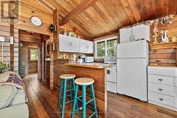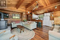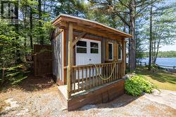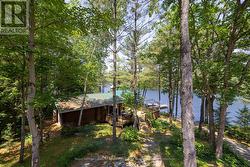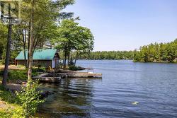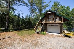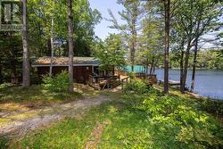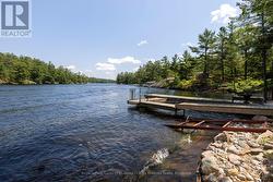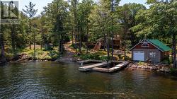 Waterfront Cottage on the Severn River. Enjoy year-round living at this charming four-season cottage nestled along the Severn River, offering 177 feet of pristine shoreline. Situated on a private, year-round road, this property blends comfort, function, and natural beauty .The home features walkouts from both the living room and primary bedroom to a spacious deck overlooking the water, perfect for relaxing or entertaining. The deep shoreline offers excellent swimming and fishing right off the double docks. Included on the property is an oversized insulated garage with a loft, ideal for additional storage or conversion into guest space. A dry boathouse with a marine railway makes boat storage a breeze, and also includes your own boat launch ramp while a waterside Bunkie provides cozy accommodations for visitors. Additional outbuildings include a wood shed and tool shed, adding to the cottages convenience and versatility. Whether you're seeking weekend escapes or a year-round retreat, this riverfront gem offers privacy, comfort, and endless waterfront enjoyment. (id:27)