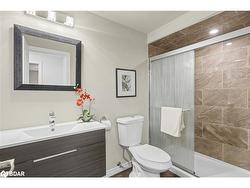 Stunning freehold end-unit townhome on the plateau, backing onto a serene ravine. This beautifully appointed residence exudes luxury and timeless style throughout. The main level welcomes you with 9 ft ceilings, rich hardwood flooring, and an abundance of natural light. The open-concept layout seamlessly integrates the chef's kitchen, dining area, and living room, creating an inviting space ideal for everyday living and entertaining. The kitchen features custom cabinetry, a large island, quartz countertops, a 5-burner gas range, and stainless steel appliances. Oversized sliding doors open to a spacious deck overlooking the ravine, perfect for enjoying your morning coffee with breathtaking views of Two Mile Creek. The primary suite offers a true retreat with a walk-in closet and a 3-piece ensuite featuring a glass shower and quartz vanity. A second bedroom or den, along with a stylish 2-piece bath, complete the main floor. The fully finished lower level extends the living space with a massive recreation room, an additional bedroom, and a modern 3-piece bathroom. Walk out to a lower stone patio and cedar shed, ideal for outdoor living and storage. Lovingly maintained and thoughtfully upgraded, this exceptional home is a true showstopper move-in ready and designed to impress.