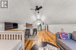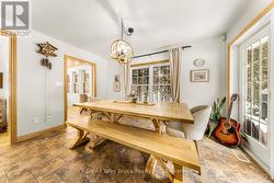 Just about the prettiest home in Sauble Beach, this enchanting two-storey family home captures timeless charm with its inviting wraparound porch, complete with a swing and beautiful curb appeal. Inside, a modern cottage aesthetic blends warmth and style across three bedrooms, featuring f/a gas heat, central air, on-demand hot water,custom maple trim detailing and a new steel roof. The spacious kitchen features abundant cabinetry, while the cozy living room takes in views of the porch and natural light. The dining area opens to a lovely backyard oasis with a firepit and hot tub, perfect for entertaining or quiet evenings. Added in 2025, the versatile main-floor office, ideal for work, yoga, play, or creative pursuits, stands out with a striking round window that's as eye-catching from the outside as it is from the inside. Upstairs, the primary bedroom provides generous space and his-and-hers closets. Above the detached garage, a beautifully finished guest suite adds even more appeal with a three-piece bath, sleeping loft, hotel-style kitchenette, private entrance, fenced outdoor area, and an outdoor shower-a stylish and functional retreat for guests or extended family.South Sauble location is ideal commuter location for Bruce Power employees. Easily walk to nearby inland lake: Silver Lake, where paddling and pond hockey are neighbourhood pastimes. Central to Saugeen and Sauble Beach and the vibrant downtown activity. (id:27)