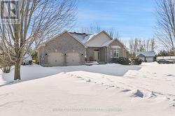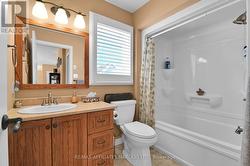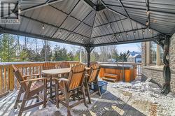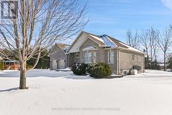 Tucked away on a peaceful street in a sought-after neighbourhood, this beautifully crafted stone and brick bungalow showcases quality construction, and thoughtful design throughout. On the main level the home offers two spacious bedrooms and three well-appointed bathrooms, making it ideal for comfortable, low-maintenance living. Step inside to a welcoming foyer that opens into a bright, flowing main living area. The living room is warm and inviting with a gas fireplace, seamlessly connecting to an expansive dining area-perfect for entertaining. The kitchen is both stylish and functional, featuring a central island, generous cabinetry, pull-out pantry storage, and a convenient built-in workspace. From the kitchen, patio doors lead to a generous deck with gazebo and hot tub overlooking a private, beautifully landscaped backyard-an ideal spot to relax or host guests. The primary bedroom retreat boasts a walk-in double closet, elegant tray ceiling, and a stunning ceramic ensuite complete with a seated shower. A second bedroom with double closet sits near a full four-piece bathroom, offering comfort and privacy for guests or family. Hardwood and ceramic flooring enhance the main level, which also includes a combined laundry and powder room for added convenience. The partially raised lower level is equally impressive, offering a generously sized, finished recreation/family room ideal for entertaining or everyday relaxation. The remaining unfinished space includes a bathroom rough-in and presents an excellent opportunity to create an additional bedroom or expand the living area, allowing the home to adapt effortlessly to your lifestyle. There have been significant updates to the home including replacing the furnace and air conditioner in 2025, water treatment system, interlocking driveway installed, fencing along rear of property, hot tub, see the feature sheet for complete list. This well-designed home combines comfort, quality, and future potential in a serene setting. (id:27)