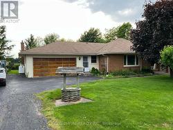 Nestled in the picturesque countryside, this charming bungalow offers a serene escape, perfectly located just opposite the Amazon facility and a quick 5-minute drive from HWY 401. ft., this home features a double-car garage with seamless access to the laundry and Livingroom. Sun-drenched interiors define the separate Living and Family rooms, creating an inviting ambiance. The well-equipped kitchen flows seamlessly into a separate dining area, ideal for entertaining. Retreat to the primary bedroom oasis, complete with dual closets and a luxurious 4-piece en-suite. Additional luxuries include a sauna and an expansive patio deck overlooking the vast backyard, perfect for hosting BBQ gatherings. With schools, parks, churches, and shopping nearby, this residence offers a tranquil lifestyle. Don't miss out on the opportunity to own this dreamy haven. schedule your showing today and embrace the comfort and beauty of country living at its finest. (id:27)