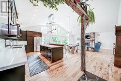 Set On A Serene & Private Half-Acre Lot In Desirable Minesing, Just Minutes From Snow Valley Ski Resort, This Custom Modern Bungalow Offers A Rare Blend Of Sophistication, Functionality, And Lifestyle Flexibility. Framed By Mature Trees & Enhanced By Landscape Lighting & An In-Ground Sprinkler System, The Curb Appeal Is As Compelling As What Lies Within. Inside, You're Greeted By A Soaring Vaulted Ceiling Over A Stunning Open-Concept Kitchen & Great Room, Filled With Natural Light & Perfect For Entertaining Or Relaxed Everyday Living. The Layout Is Refreshingly Unique, With A Thoughtfully Designed Main-Floor Primary Suite Featuring A Walk-In Closet & A Luxurious Five-Piece Ensuite Bath. Also On The Main Floor Is A Cozy Den With Built-In Shelving, Ideal For Working From Home Or Quiet Reading, Plus A Generous Mudroom & Laundry Area With Direct Access To The Garage & Backyard. The Fully Finished Lower Level Is Bright & Spacious, With High Ceilings, Oversized Above-Grade Windows, A Large Recreation Room, Three Additional Bedrooms, A Well-Appointed Four-Piece Bathroom With Dual Sinks, & Two Dedicated Storage Rooms. Whether You're Accommodating Older Children, Guests, Or Seeking Space For Hobbies & Media, The Basement Delivers Versatility Without Compromise. Outside, Enjoy The Best Of All Seasons From The Expansive Rear Deck, Partially Covered For All-Weather Enjoyment. Additional Highlights Include Radiant In-Floor Heating Throughout & An Oversized 2-Car Garage. Enjoy Skiing/Snowboarding In the Winter, & Biking & Hiking In The Summer - Less Than 5 Minutes To Snow Valley Resort, & 20 Minutes To Both Horseshoe Resort & Mount St Louis Moonstone! This Is A Home For Those Who Appreciate Quality, Privacy, & A Modern Floor Plan That Breaks Away From The Ordinary. This Minesing Gem Offers The Best Of Rural Charm & Modern Convenience. (id:27)