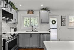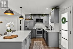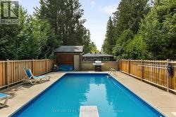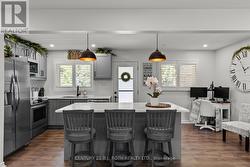 Presenting 1551 Gill Road, Springwater. This fully renovated open-concept bungalow sits on a spacious 60x363 ft lot in peaceful Midhurst, just minutes from the highway and Barrie amenities. The private yard offers no rear neighbors, updated inground pool with newer liner, concrete surround, pool shed, garden shed, and a relaxing hot tub. Parking for 8, including a paved driveway, provides plenty of space for boats, RVs, or trucks! Inside, enjoy modern updates (2020) including electrical, plumbing, insulation, drywall, furnace, A/C, on-demand water heater, and flooring. The kitchen features Frigidaire Gallery appliances, a stylish backsplash, and island seating for 4. The spacious living room includes a cultured stone gas fireplace. The primary bedroom boasts a walk-in closet and updated 3-piece ensuite with walk-in shower. Two additional bedrooms share a renovated 4-piece bath. Main floor laundry adds extra convenience. This beautifully updated home offers a perfect blend of modern comfort and serene outdoor living. (id:27)