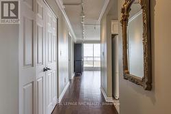 Situated on the 8th floor, this light filled 1,448 square foot corner suite condominum features 2 bedrooms, 2 full bathrooms, and an oversized private balcony off of the great room providing spectacular north-easterly views overlooking the city of St. Catharines and Burgoyne Woods. The desirable Southgate building boasts luxury amenities like an indoor heated pool, spa, sauna, exercise room, party room, billiards room, hobby room and 2 separate outdoor barbecue areas with patios. Upon entering the foyer of suite 804, you'll find a tasteful layout full of natural light, rich hardwood running throughout with ceramic tile in both bathrooms and the kitchen. First, an in-suite laundry room off of the foyer leads to a second bedroom featuring a custom-built Murphy bed and cabinetry, with a 4pc bathroom close by, making this area completely separate from the rest of the suite perfect for use as a guest room or office. The spacious kitchen with a separate dinette opens to a light-filled living / dining area through elegant glass French doors, ideal for entertaining. This area also includes a cozy separate TV or reading nook as well. The primary suite includes a large walk-in closet and an 4pc ensuite bathroom with a separate shower and jetted spa soaker tub. Lovely California shutters throughout, this unit also proudly boasts 2 indoor parking spaces and 2 separate storage lockers. South Gate, a pet-free building, is conveniently close to the Pen Centre, Grocery Stores, Pharmacies, Restaurants, the Meridian Centre, Performing Arts Centre, and everything else that downtown St. Catharines has to offer. (id:27)