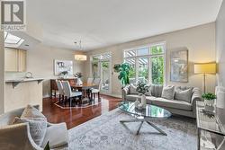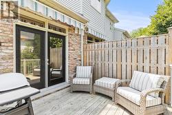 End-unit bungalow tucked away at the end of a quiet street, this is truly one of the most desirable units in this enclave community. From the moment you step inside, you're welcomed by a spacious front foyer that flows seamlessly into the main living area. The living room features rich hardwood flooring and oversized windows that fill the space in natural light while offering views of the private backyard. Adjacent to the living room is a cozy dining area with elegant french doors that open to your own private deck, complete with a retractable power awning. The backyard also includes a grassy area ideal for pets or gardening. The kitchen overlooks the main living space and is outfitted with newer stainless steel appliances, offering both function and style. The main floor includes two well-appointed bedrooms. The primary bedroom overlooks the peaceful backyard, while the front bedroom (previously used as a secondary living space) offers a charming view of the front yard through its large bay window. These bedrooms share a stylish four-piece bathroom with granite countertops. A thoughtfully designed laundry room with plenty of storage completes the main floor. The fully finished lower level adds additional living space, featuring fresh paint, updated flooring and California shutters. This level includes an expansive rec room, third bedroom with a double closet, three-piece bathroom and a versatile craft or hobby room. The low monthly maintenance fees include water, lawn care, snow removal, exterior maintenance (including roof and windows) and more, offering exceptional value and peace of mind. If you're looking for a well-maintained move-in ready home with minimal upkeep this is a perfect opportunity to enjoy carefree living. (id:27)