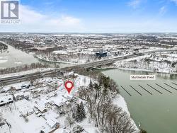 Cottage like living - in the city! No need for roof racks - grab your paddle board and head out on the pond or stroll down to the water's edge for a close-up view of the regatta on the Royal Canadian Henley Rowing Course. View breathtaking sunsets illuminating the tranquil Martindale Pond while reclining on your exceptionally private two-tier deck. Through the kitchen window, bird watchers may glimpse eagles, orioles, swans, and owls attracted to the backdrop of mature trees and water. This lovely home combines easy access to amenities with the privacy of living in nature. The second storey of the home provides a full-floor primary suite. Through the spacious bedroom's large windows, water views, including sunsets, may be admired from the comfort of bed. There is a surprising amount of closet space and a bonus room that could serve as a yoga room or for multiple purposes. This level also boasts a bright corner office area at the top of the stairs. On the main level, two bedrooms coupled with another full bathroom allow for flexibility for family or guests. The main open-concept living area provides exactly what it should for this unique property: front-row views of the backyard and water. The neutral palette, vaulted ceiling, and skylights combine to enhance the bright interior space. The living room area includes hardwood flooring, a corner gas fireplace, and a large bay window. The kitchen has stone countertops, ample cabinetry, and garden doors leading outside. Additionally, community access with steps to the pond is available just a short walk away along the lush park area adjacent to the backyard. This unique waterfront home is situated in a beautiful setting that is increasingly difficult to find. Be sure to flip through all the photos and check out the YouTube video too. :) (id:27)