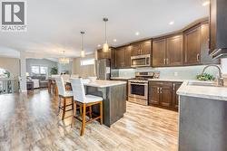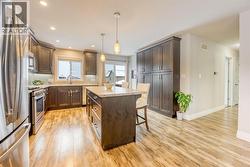 344 Citation Circle is located in a vibrant riverside community, close to parks, scenic riverfront trails, restaurants, and everyday shopping, offering an easy, connected lifestyle while still tucked away on a quiet residential street. Built in 2018 and beautifully maintained, the timeless stone and brick exterior creates instant curb appeal, complemented by the covered front entry, perfect for welcoming guests and handling everyday comings and goings with ease. Inside, the main floor is bright, comfortable, and thoughtfully laid out for everyday living. The kitchen anchors the space with generous cabinetry, ample counter space, and a natural flow to the dining and living areas, making it just as functional for busy mornings as it is for casual entertaining. The large primary bedroom offers a peaceful retreat, complete with a walk-in closet and cheater-style ensuite access, while two additional generous bedrooms on the main floor provide flexibility for guests, a home office, or family use. The lower level expands the living space with an expansive recreation room, highlighted by a cozy fireplace that sets the tone for relaxed evenings and family movie nights. A large guest bedroom, full bathroom, and excellent storage complete this level. Out back, the private yard is designed for summer enjoyment, featuring two-tiered decking and a gazebo, ideal for relaxing, entertaining, and making the most of warm evenings. Move-in ready and thoughtfully designed, this home delivers comfort, convenience, and beautiful living in a location people truly enjoy. (id:27)