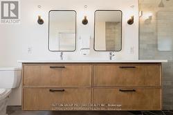 DHP Homes welcomes you to 159 Renaissance Drive situated in the desirable Harvest Run subdivision. This Five bedroom home comes with quality finishes. Entering into the foyer you are greeted with 18ft ceilings and an inviting feature wall, a two piece guest bathroom, and an open plan Kitchen offering bespoke cabinetry with quartz countertops and oversized island, the family room with fireplace and custom cabinetry and a bright dining room with access to a rear covered porch, finally a mud room leading to a double car garage complete the main floor. Upstairs boasts a primary bedroom with walk in closet and an ensuite with a double vanity and custom walk-in tiled shower, 3 additional bedrooms, a family bathroom and laundry await. The basement has been fully finished with 8.5ft ceilings, a rec room with a feature fire place, a further bedroom and an additional bathroom. Located 15 mins to London or Port Stanley. Upgrades include, concrete driveway, irrigation system, fully finished basement, oak staircase. (id:27)