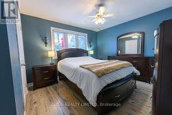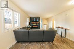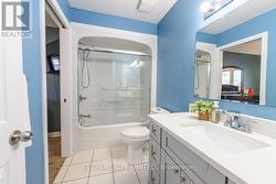 Welcome to this charming all-brick bungalow, offering warmth, comfort, and functional living space for the whole family. The main floor features durable laminate flooring, a spacious primary bedroom with walk-in closet, a 4-piece cheater ensuite with a quartz counter top, and two additional bedrooms tucked down the hall for added privacy. The inviting living area has a cozy electric fireplace, creating the perfect space to unwind. The kitchen and dining area opens through sliding doors to a fully fenced, north-facing backyard surrounded by beautiful mature trees showcasing stunning fall colours. Designed for entertaining, the outdoor space includes a large deck, hot tub with pergola, gas line for a fire table, and an additional gas hookup for the BBQ-sure to become your favourite gathering spot. The fully finished lower level expands your living space with a large recreation room, an additional bedroom with walk-in closet, and a 4-piece bathroom complete with a relaxing jet tub, making it ideal for guests, teens, or extended family. A solid, well-maintained home with a thoughtful layout, located in a family-friendly area close to great schools. Additional updates include a new dishwasher, new fence along the west property line, roof (6 years), furnace and A/C (5 years), and a shed with cement pad and ramp. New Sarum School Zone. (id:27)