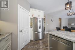 This could be the home you've been waiting for! Located in the sought after Shaw Valley subdivision, this spacious 3+1 bedroom 4 bathroom home offers over 2,700 sqft of finished living space with quality finishes throughout. The open concept layout flows seamlessly from the kitchen to the dining and family rooms, complete with a cozy fireplace - perfect for entertaining without missing a moment. The bright kitchen features ample cabinetry, a walk-in pantry, stainless steel appliances, gleaming tile backsplash, and a breakfast bar, making mealtime a pleasure. Convenient main floor den provides a flexible space for a home office, second living room, or kids' playroom. Upstairs, the oversized primary bedroom boasts a walk-in closet and a stunning 5 piece ensuite with vaulted ceiling. Two additional generous bedrooms with ample closet space and a 4 piece bathroom complete the second level. The recently fully finished basement adds a large rec room with rough-in for a wet bar, a 4th bedroom, a 3 piece bathroom, and plenty of storage in the utility and cold rooms. Outside, the fully fenced premium pie shaped lot is huge and offers exceptional space ideal for creating your dream backyard oasis with room for a pool, cabana, trampoline, playground, and more. Double car garage and large covered porch. Conveniently located close to all amenities, with quick access to London, Highways 401 & 402, and Port Stanley. (id:27)